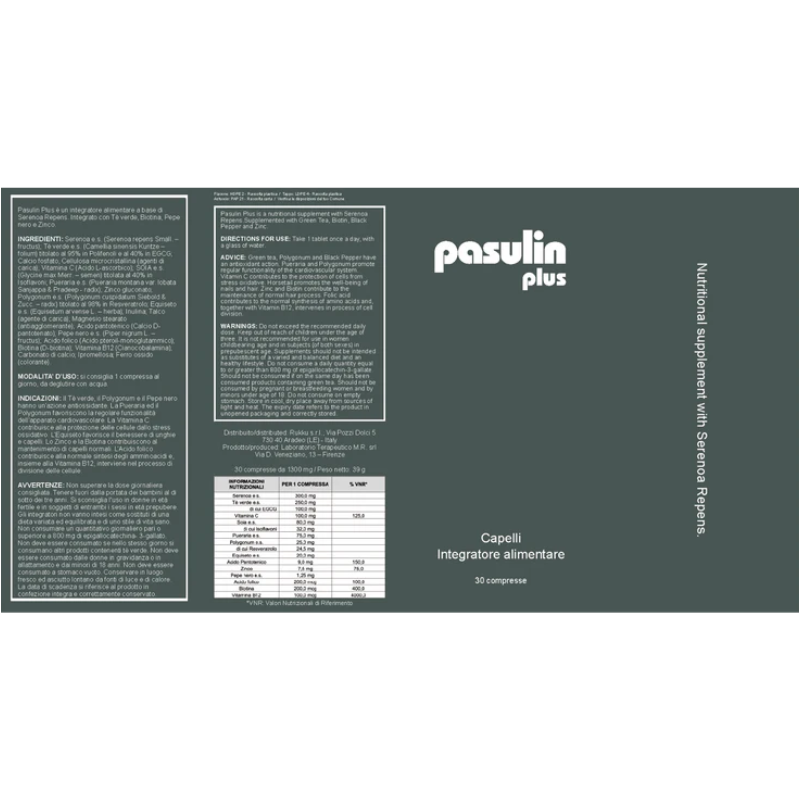 Ogni compressa di Pasulin Plus contiene 300 mg di estratto vegetale di Serenoa Repens e per questo è in grado di contrastare il diidrotestosterone (DHT) e di evitare il danneggiamento dei follicoli piliferi.